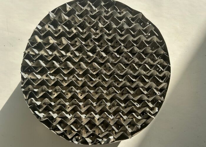 أبراج امتصاص: في مكافحة تلوث الهواء، يستخدم التعبئة المعدنية الهيكلية لإزالة الغازات مثل ثاني أكسيد الكربون وثاني أكسيد الكبريت والأمونيا من تدفقات الصرف الصناعي.